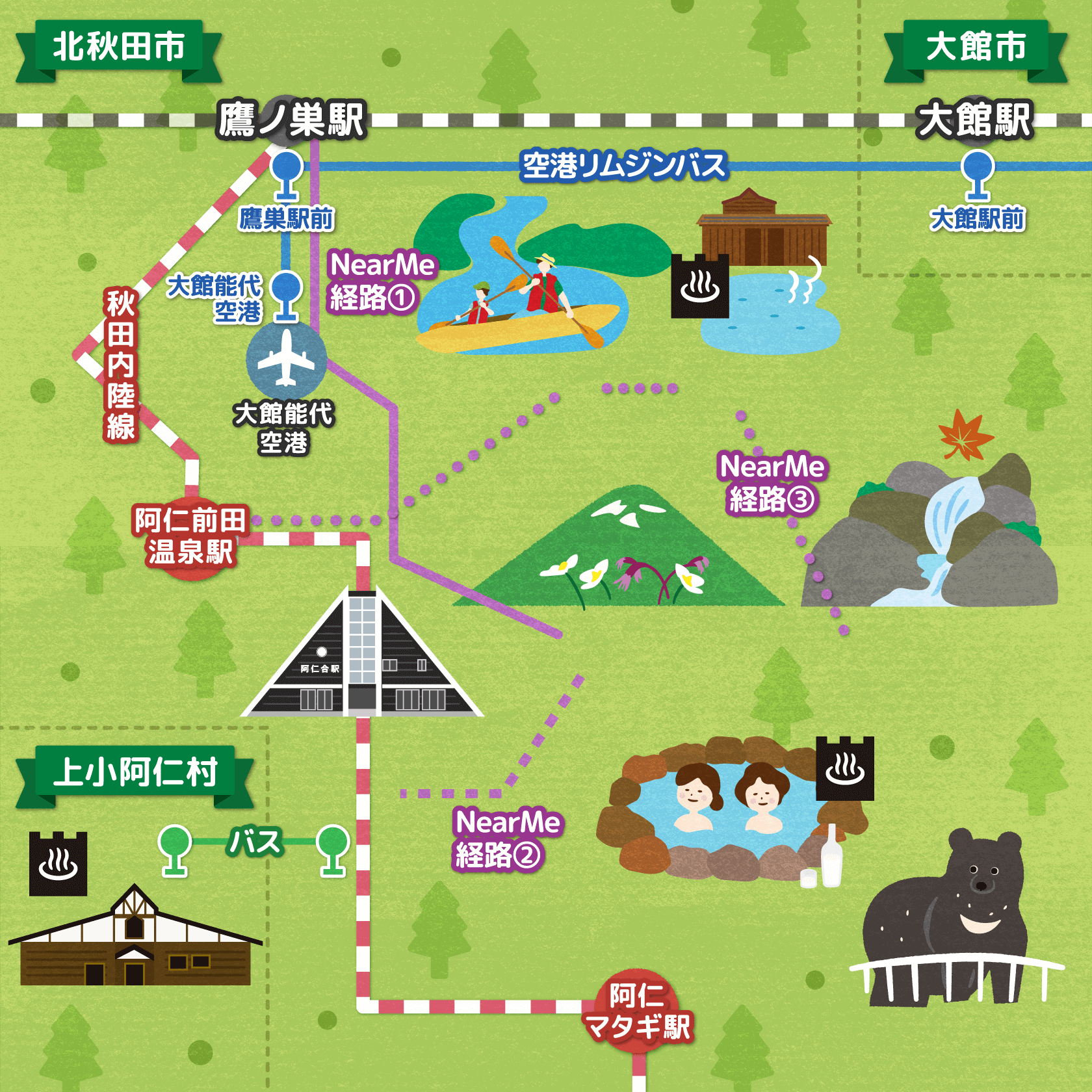 ※2乗り合いタクシーは前日午後五時まで予約。詳しくは: https://www.vill.kamikoani.akita.jp/forms/info/info.aspx?info_id=7035