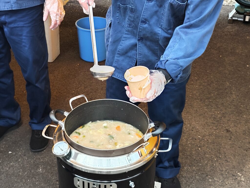 [⇩鉄道鍋イメージ⇩]※小坂 ・鉄道まつり2025でのふるまい時の様子(中身は豚汁)