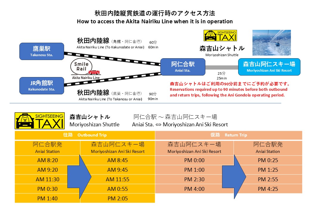 ①JR鷹ノ巣駅/大館能代空港 ⇔ 森吉山阿仁スキー場