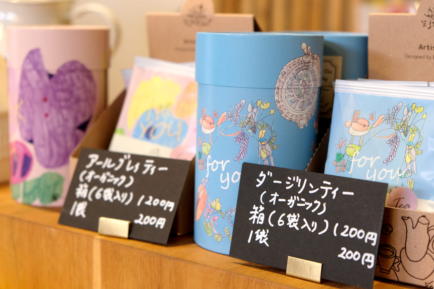 紅茶の茶葉や、ドリップパックのコーヒーも販売しています。