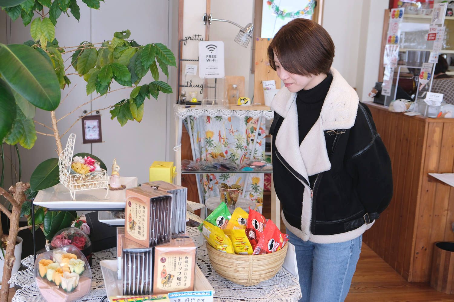 ドリップパックやお菓子、雑貨なども販売しています。