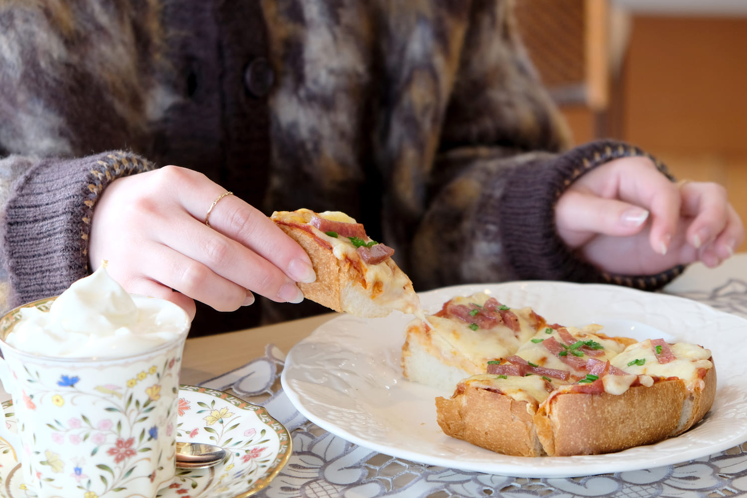 豊富なメニューに迷いながらも、この日はウインナーコーヒーをいただきました。苦味の強いフレンチローストに、ホイップクリームの甘さ。まろやかでやさしい味わいに、肩の力が抜けていくのを感じます。