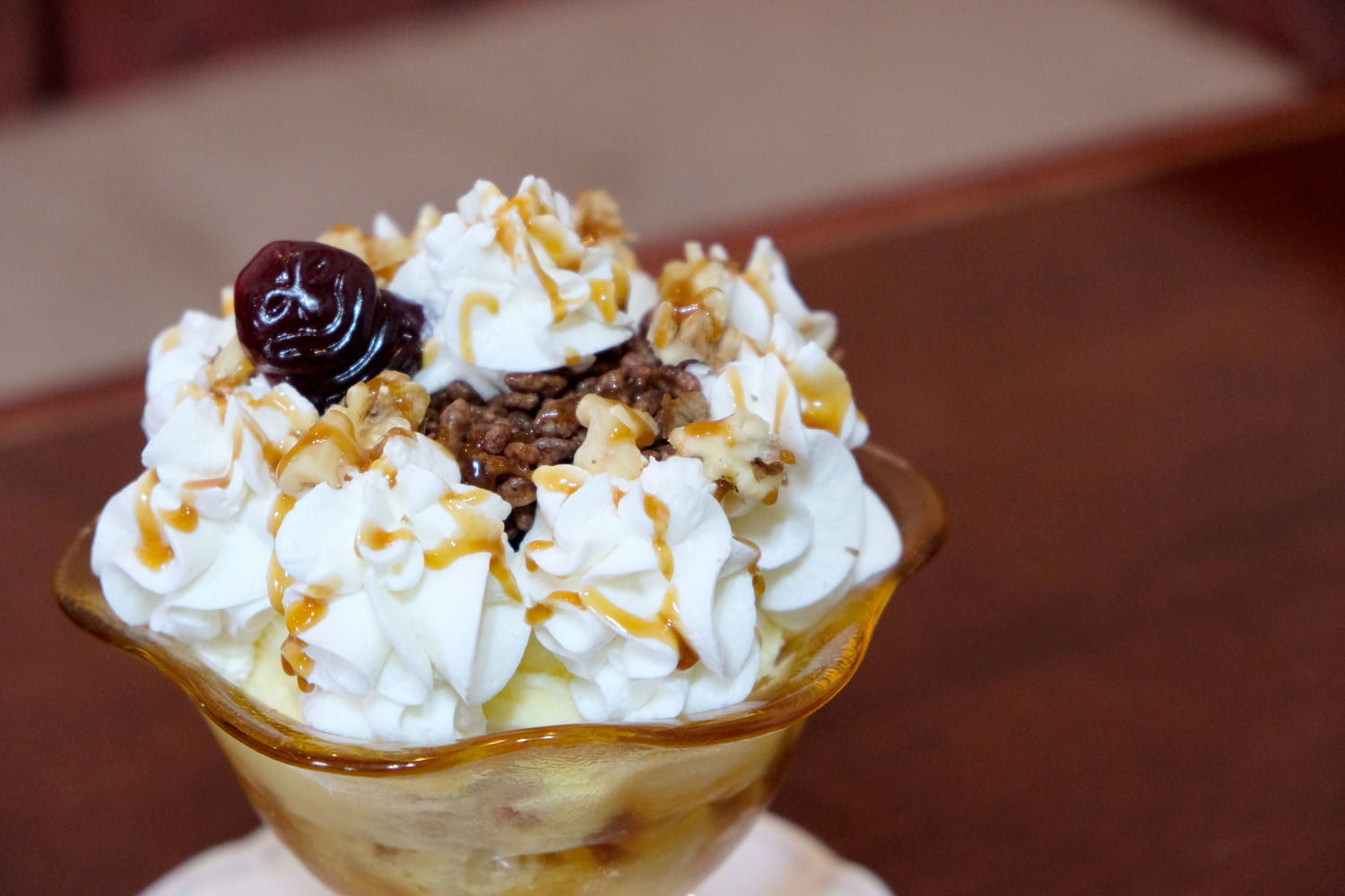「縄文パフェ」は北秋田市の世界遺産・伊勢堂岱遺跡にちなんだスイーツ。ホイップとアイスが環状列石のように並び、食感が楽しいパフとクルミ、“笑う岩偶”をかたどったゼリーがちょこんとのっています。スプーンを入れると下層からフルーツが現れ、まるで遺跡の発掘体験のようなワクワク感。縄文シリーズはほかにも厚焼きホットケーキや縄文クレープがあり、こちらも気になるところです。
